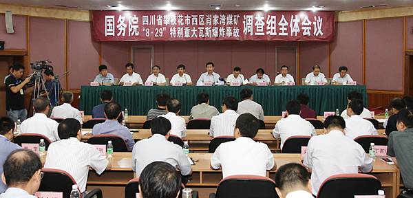 四川省攀枝花市西區肖家灣煤礦“8.29”特別重大瓦斯爆炸事故發生后,經國務院批準成立的事故調查組全體會議在攀枝花市召開,調查組組長、國家安全監管總局局長楊棟梁出席會議并講話,強調:嚴肅查處事故 深刻吸取教訓。有效防范和堅決遏制重特大事故發生。會上初步分析事故原因并且公布了事故調查組成員及監督舉報電話和聯系人。